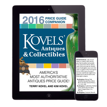 The eBook Companion to Kovels’ Price Guide 2016 is now available — only from the Kovels.com online store. America’s most authoritative antiques price guide is ready for reading on the go. Get access to thousands of prices at your fingertips while hunting for treasures on your smartphone or tablet.