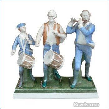 Have a glorious Fourth of July! This porcelain figurine depicts a colonial fifer and two drummers and is modeled after “The Spirit of ’76,” an 1875 oil painting by Archibald Willard. Many other collectibles have this patriotic image – everything from figurines, plates and mugs to metal banks, stamps and coins. Here are some that we found.