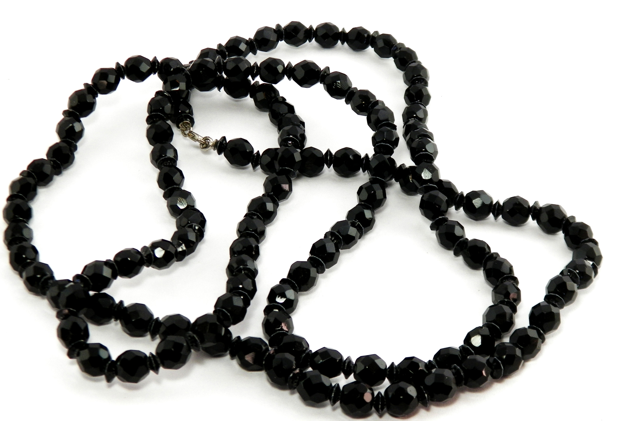 Neu-Gablonz Black Glass Faceted Beads (circa 1950) comprised this recently restrung Necklace 50 inches in length.
