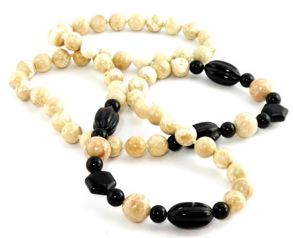 Onyx Beads with White Opal (light colored Beads) & Black Onyx Bead Necklace 17 in length