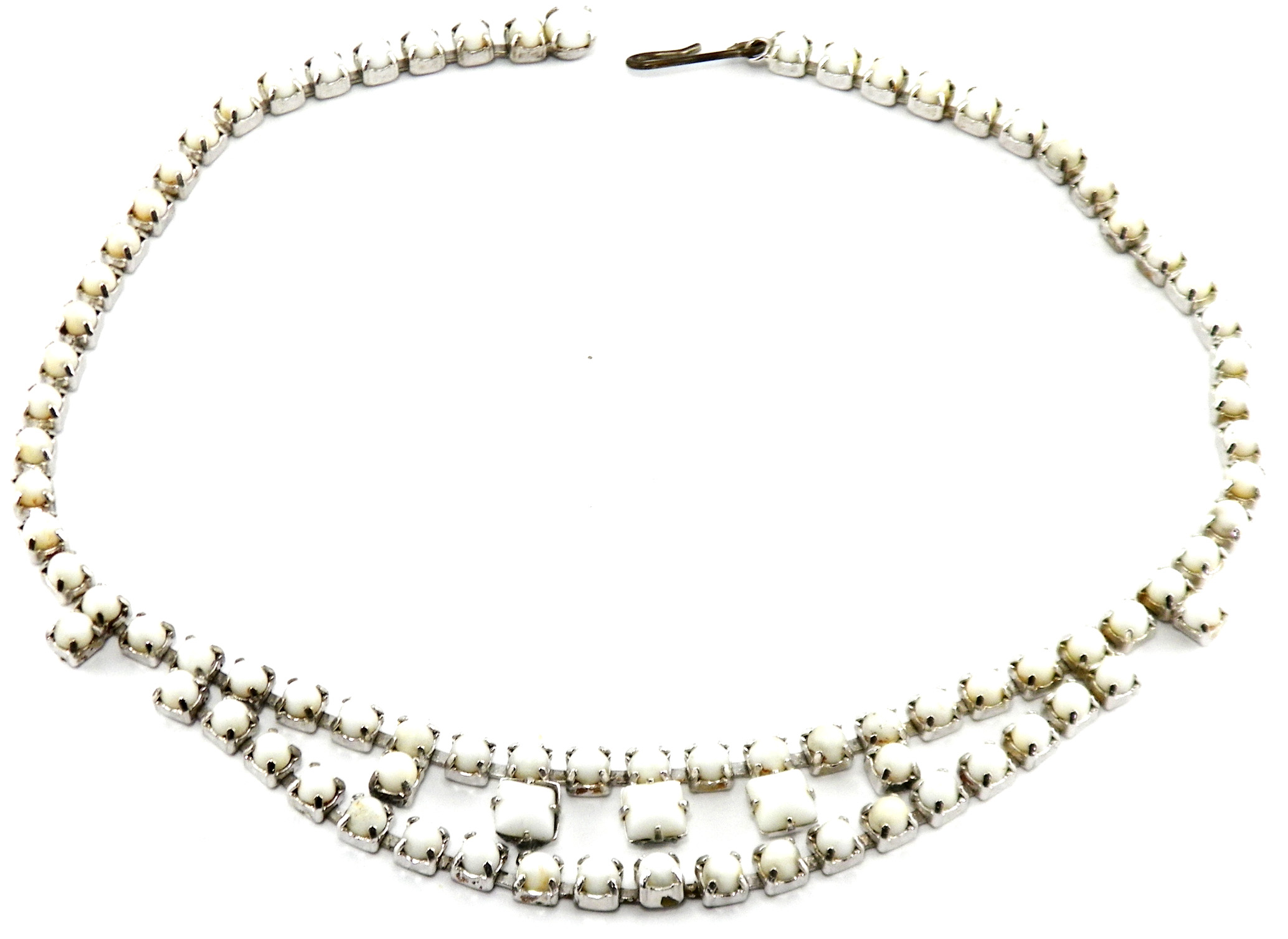 Milk Glass Stones Handset Silver Setting. Adjustable Length