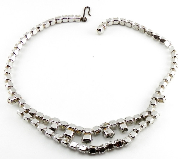 Rhinestone Necklace. Hand Set Stones with Blue Rhinestone feature.