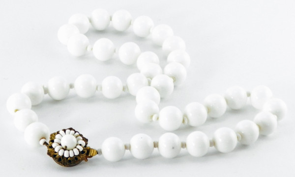 Miriam Haskell Milk Glass Bead Necklace Circa 1955