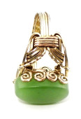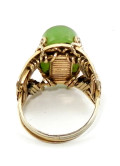 Turn of the Century Wire Wrapped Ring. The Incredible workmanship makes this ring a “stand out” addition to any collection. It is in nearly new condition with virtually no wear patterns. The green stone has not been tested but appears to be Chrysoprase .
